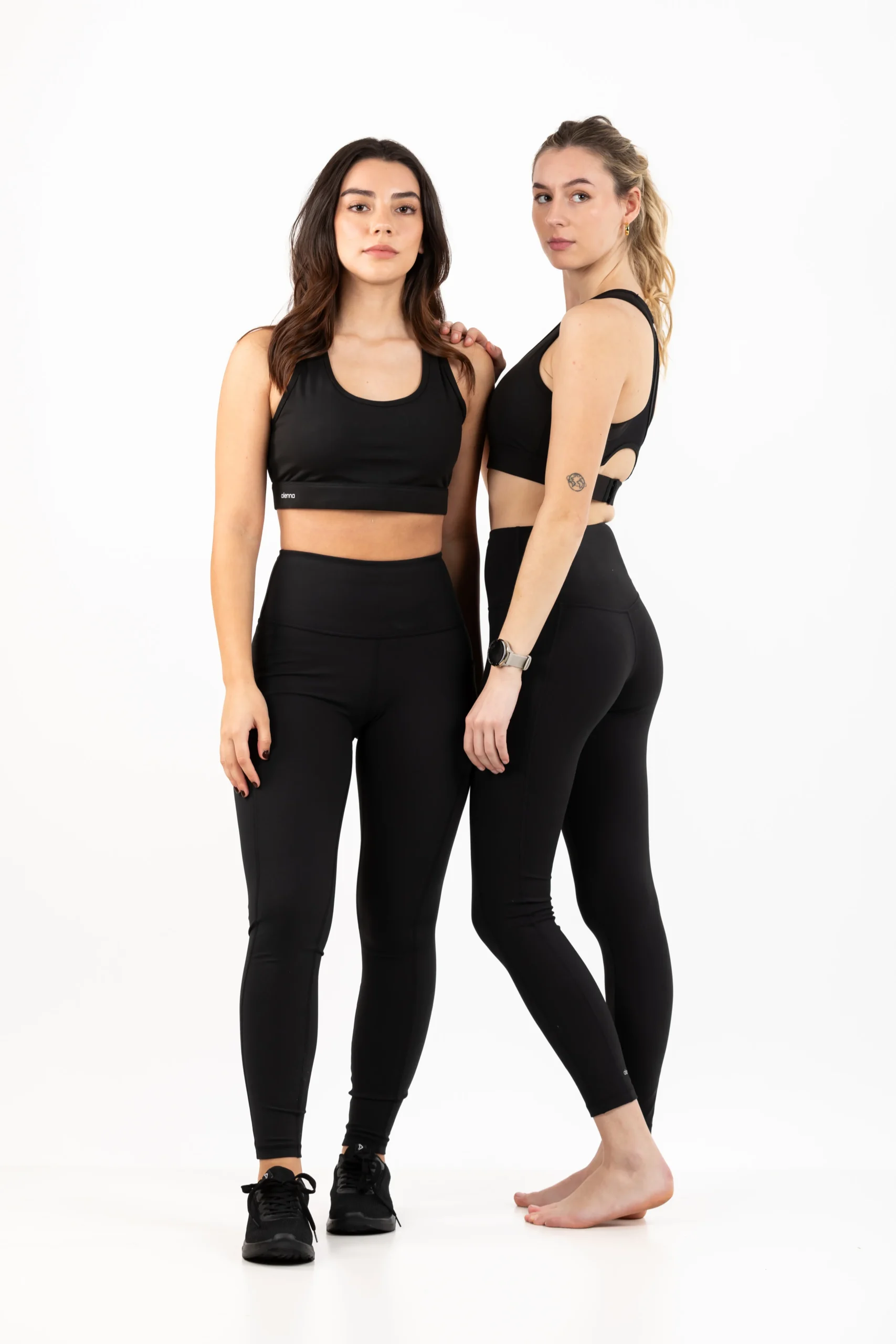 Set que une la Legging Esencia Negra con nuestro Bra Negro Fuerte, para un look básico y versátil.